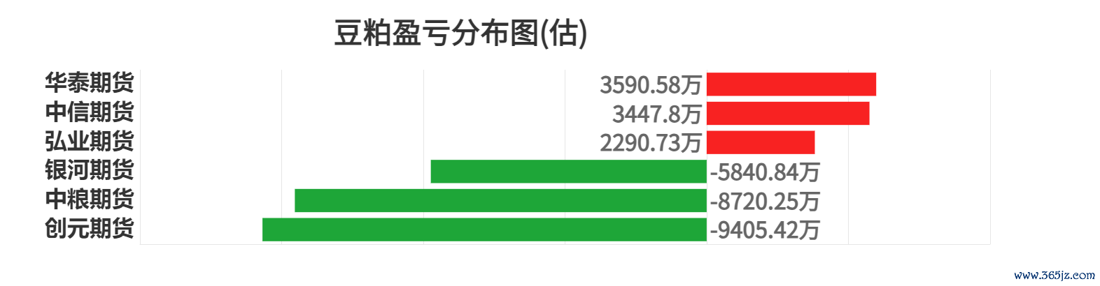 就豆粕而言,今日盈利前三席位为华泰期货、中信期货、弘业期货,分别盈利3590.58万元、3447.80万元、2290.73万元。